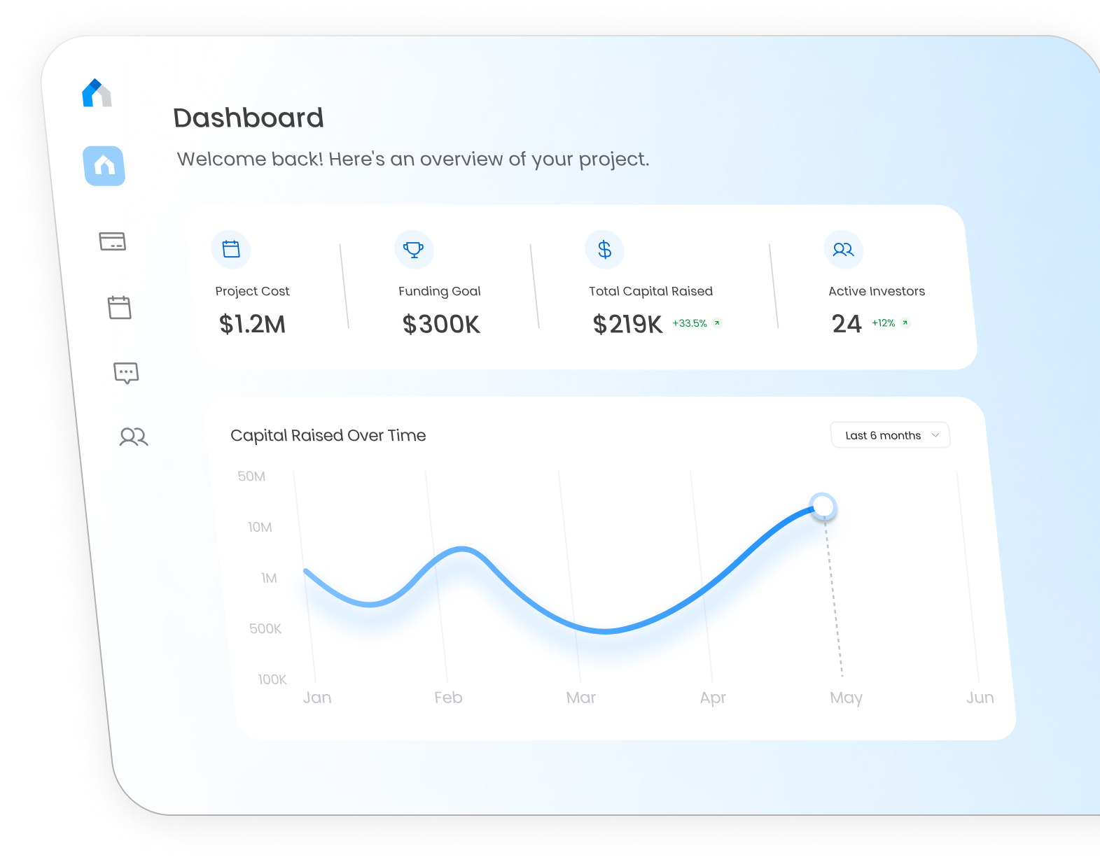 Built for real estate developers and investors to raise, track, and manage capital with clarity. Start your journey in seconds.